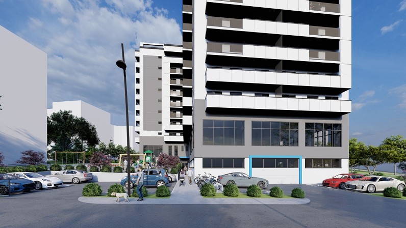 Apartamente cu 1,2, 3 si 4 camere. Locuri de joaca pentru copii, spatii verzi, acces securizat, spatii vitrate generoase, spatii comerciale la parter.