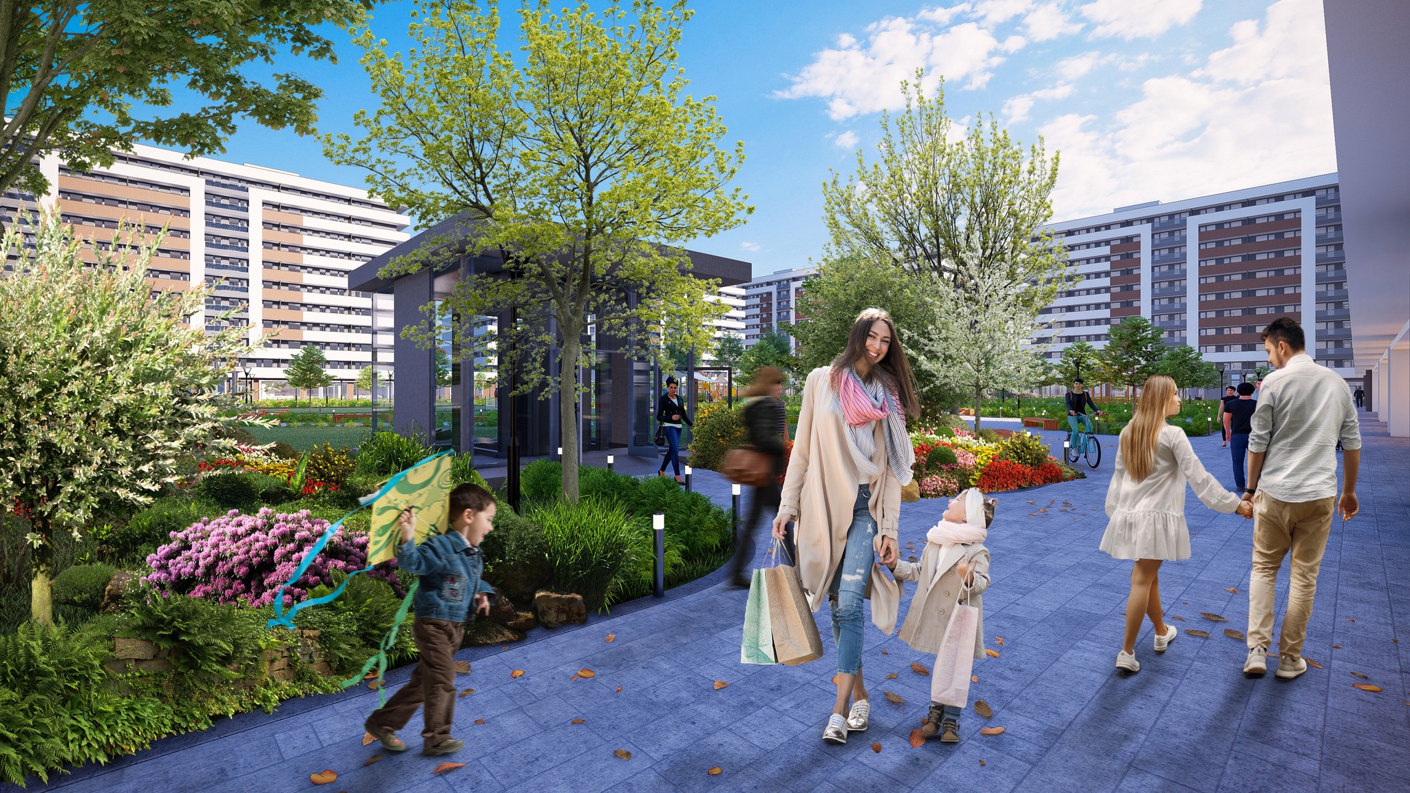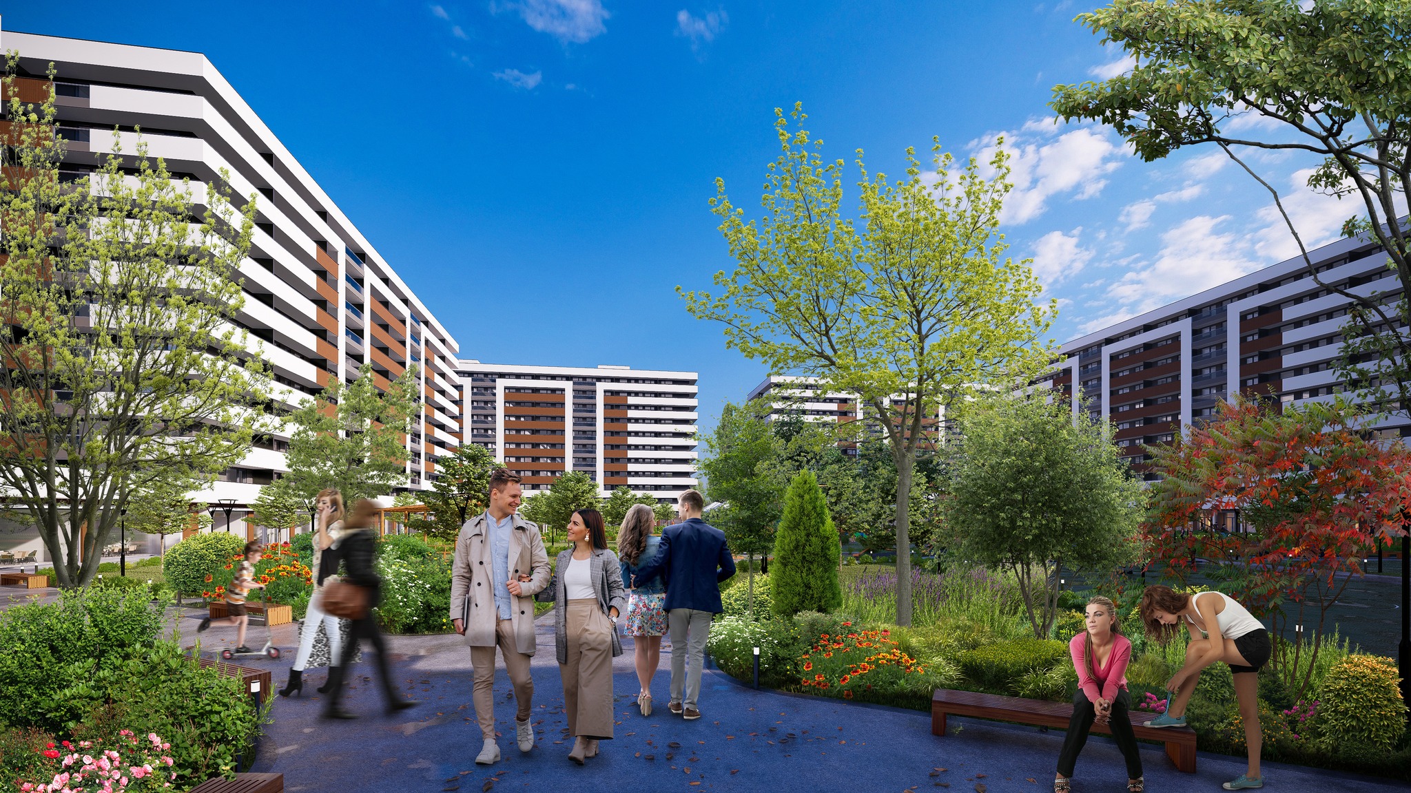 Grădina ansamblului, de peste 20.000 mp, este gândită ca un spațiu ecologic, activ și conectat la natură. Designul peisagistic, realizat de specialiști cu experiență, combină elemente urbane și naturale pentru a crea un mediu armonios și relaxant.