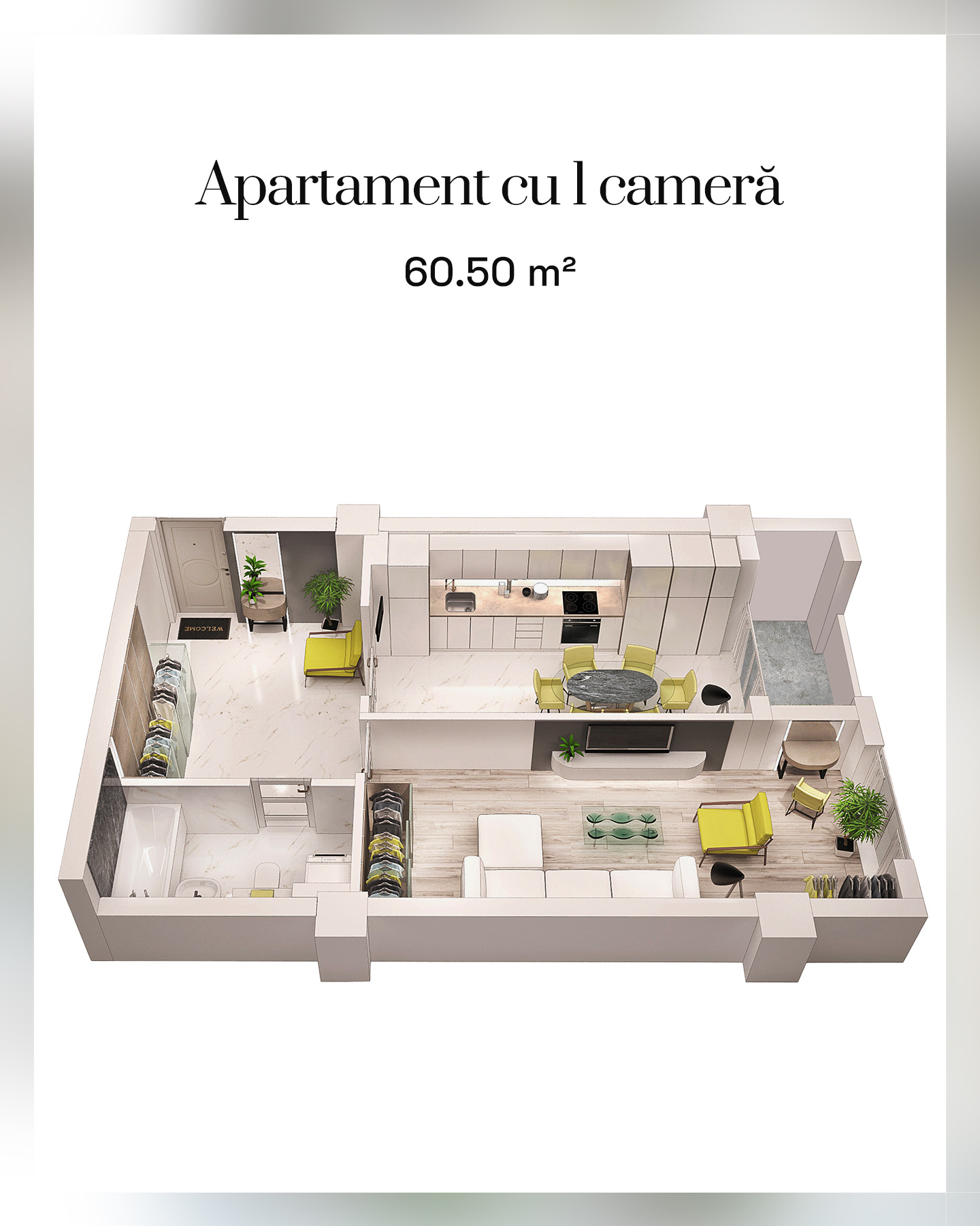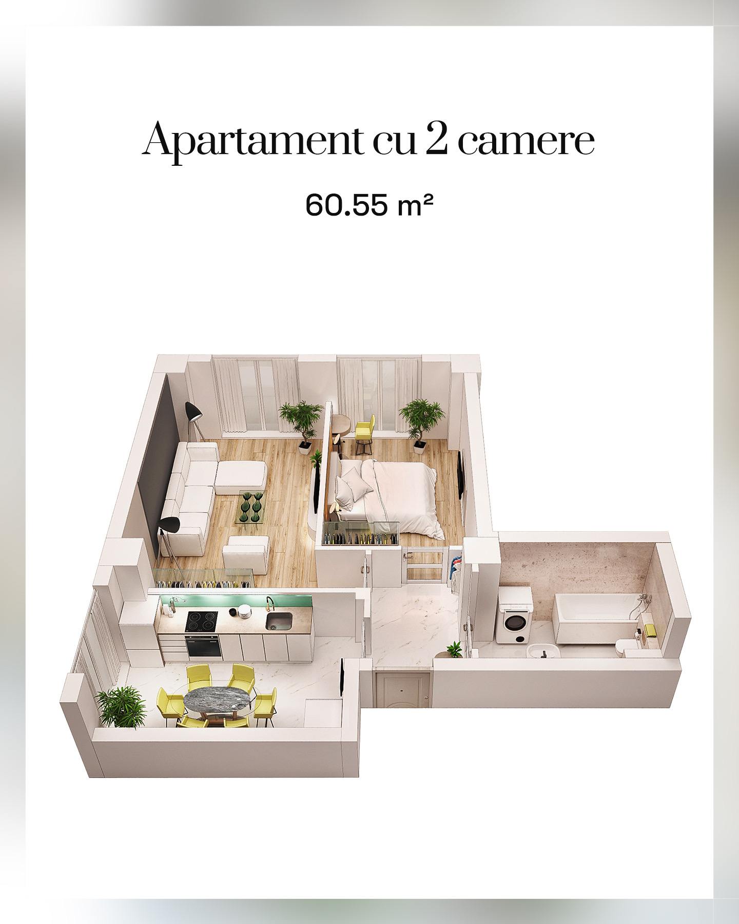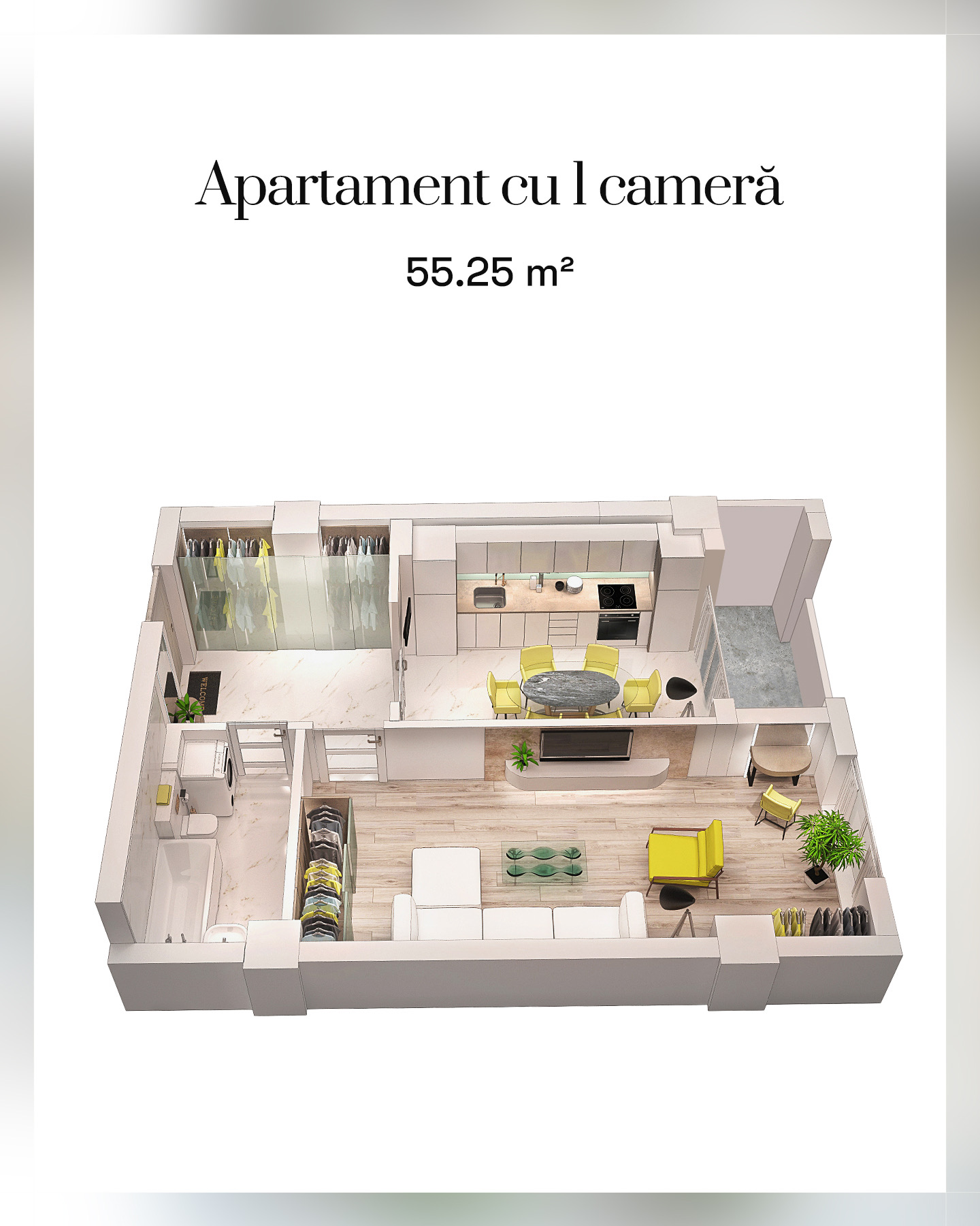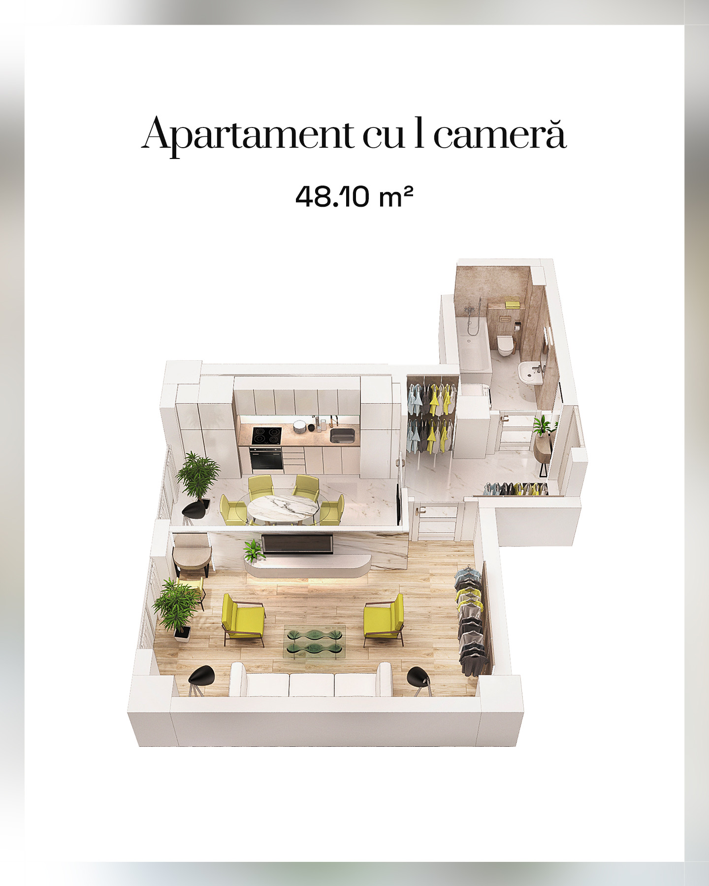 Aici găsești și apartamente compacte, gândite pentru o utilizare eficientă a fiecărui metru pătrat 🏡.