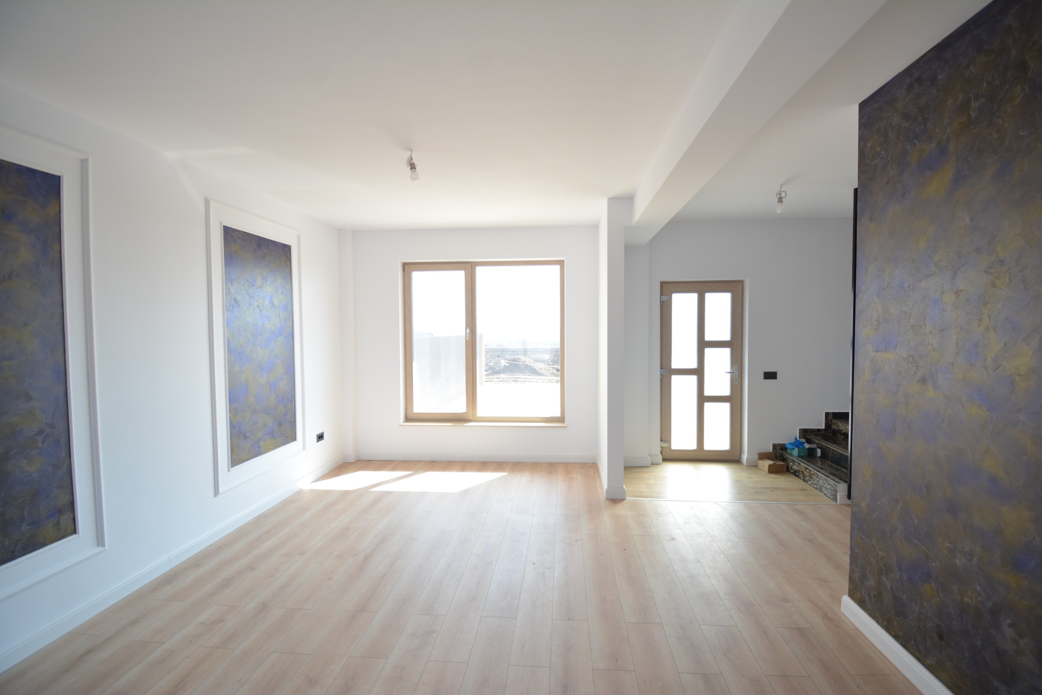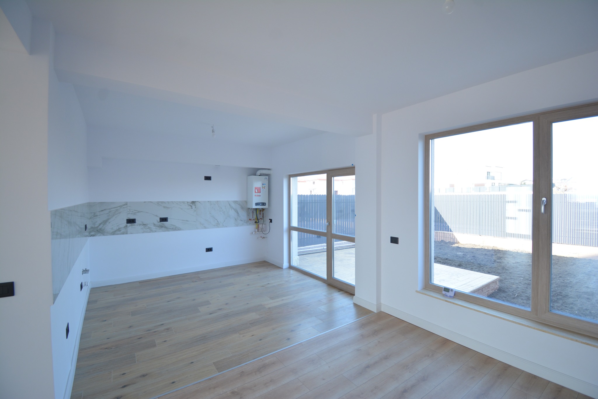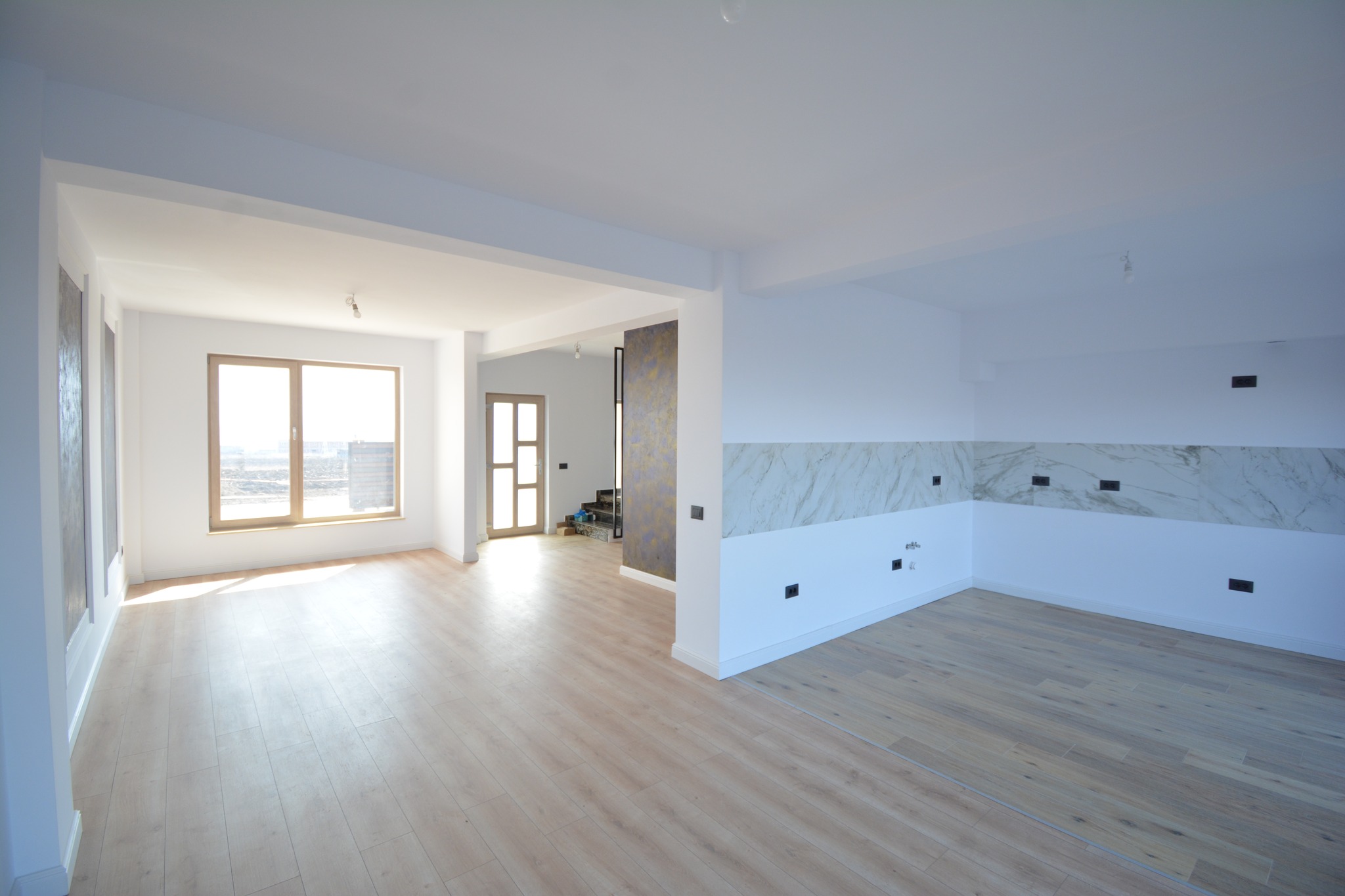 • parter: living, dining + bucătărie open-space, baie