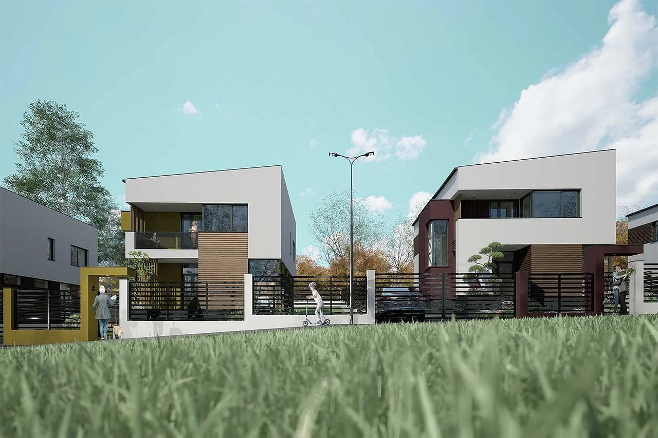 Proiectul oferă locuințe care pun accent pe funcționalitate, intimitate și un cadru natural echilibrat.
