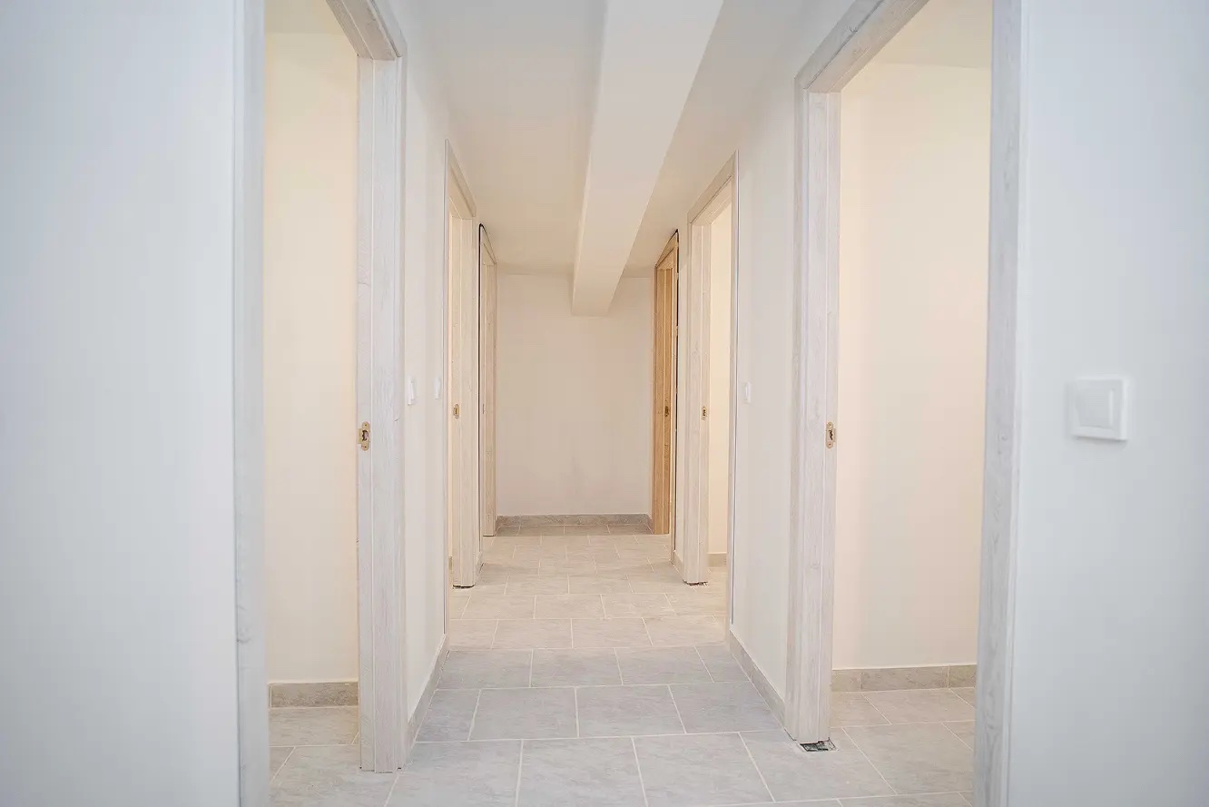 Finisajele interioare sunt realizate cu tencuială mecanizată, oferind un aspect uniform și durabilitate crescută. În plus, sistemul de hidroizolație performant asigură protecție împotriva infiltrațiilor, garantând siguranță și confort în timp.